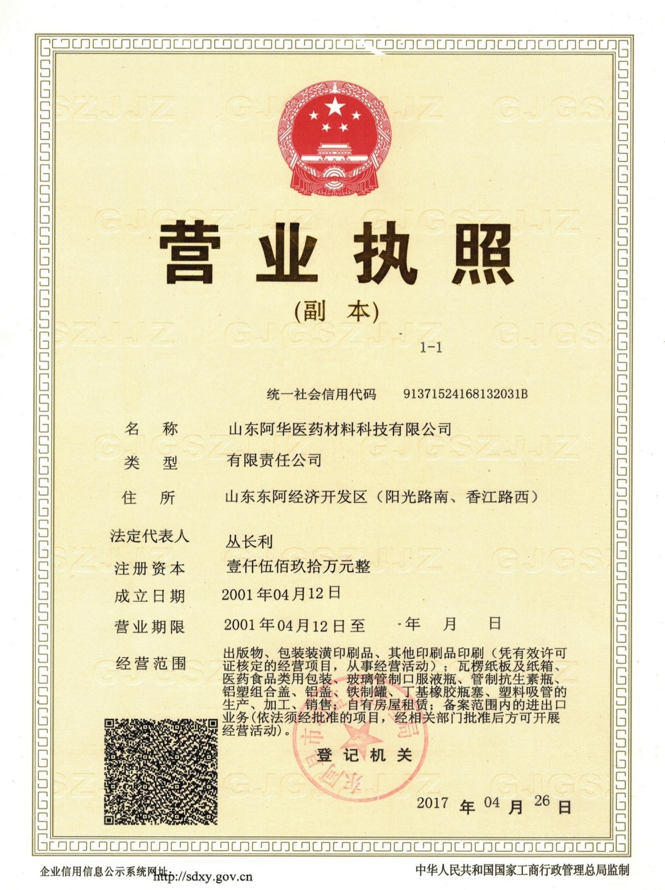 山東阿華醫(yī)藥材料科技有限公司信息公示