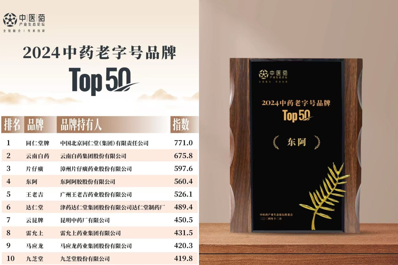 論壇期間,中康產業研究院“2024中藥老字號品牌TOP50”榜單隆重揭曉,該榜單采用中康產業研究院的量化評價模型,依據中藥老字號品牌發展指數,從品牌厚度、品牌深度和品牌廣度三個維度評選,東阿阿膠位列榜單第四,彰顯了其作為中藥老字號品牌的良好綜合競爭力。